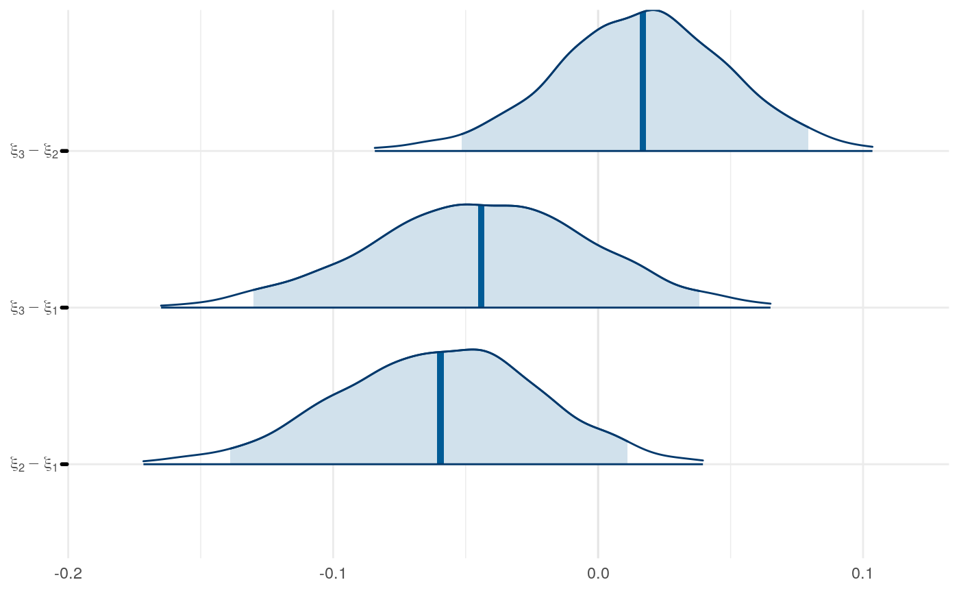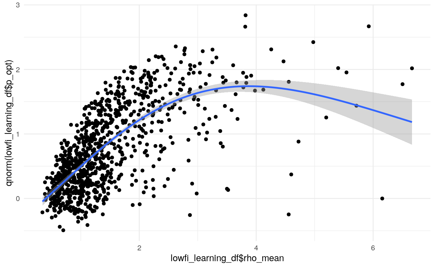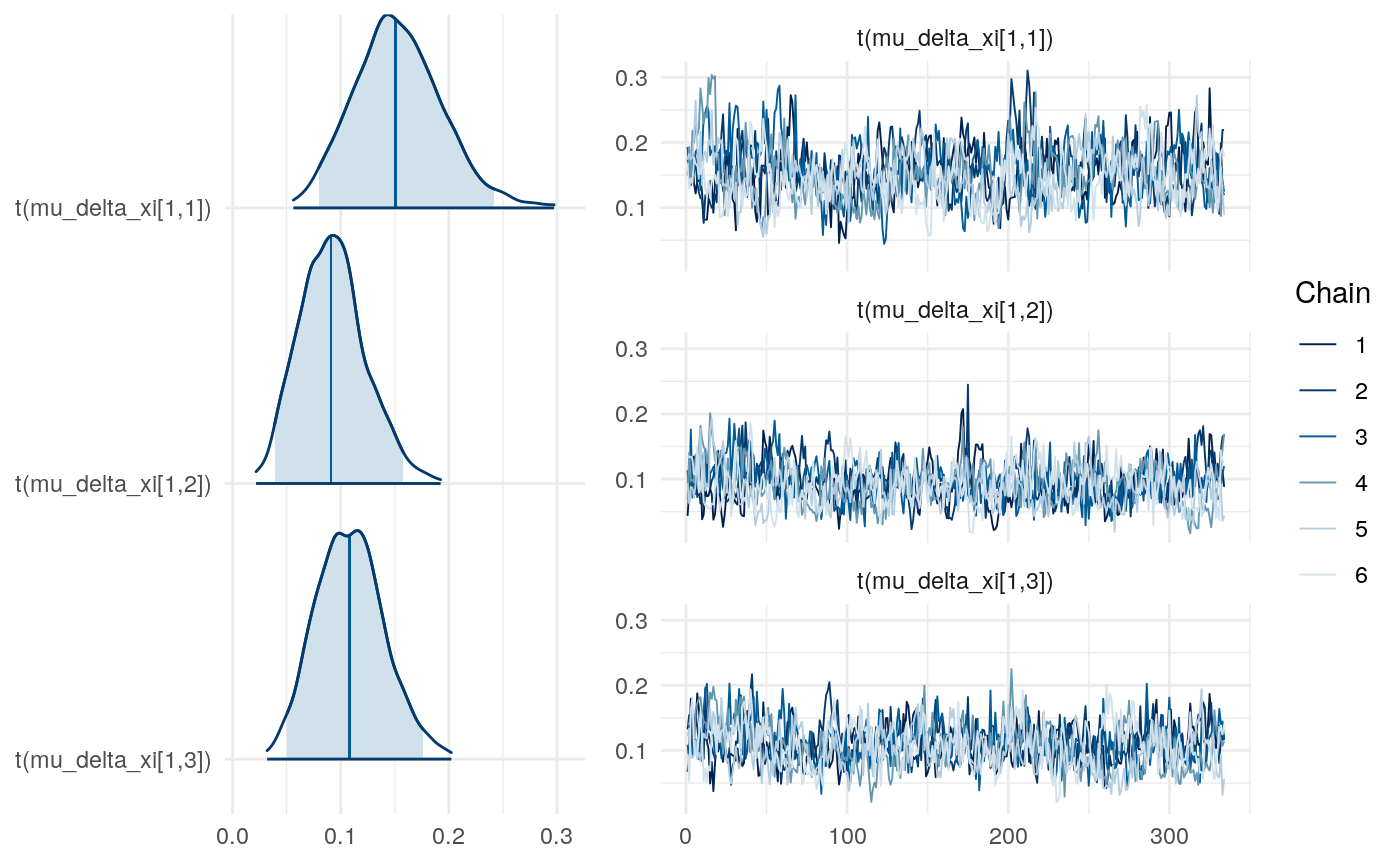 So the proportion of variance due to the means of individual-level parameter posteriors tends to be highest for \(\xi\) and lowest for \(\rho\).