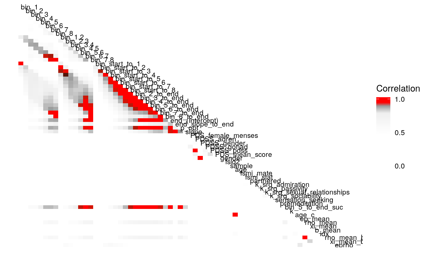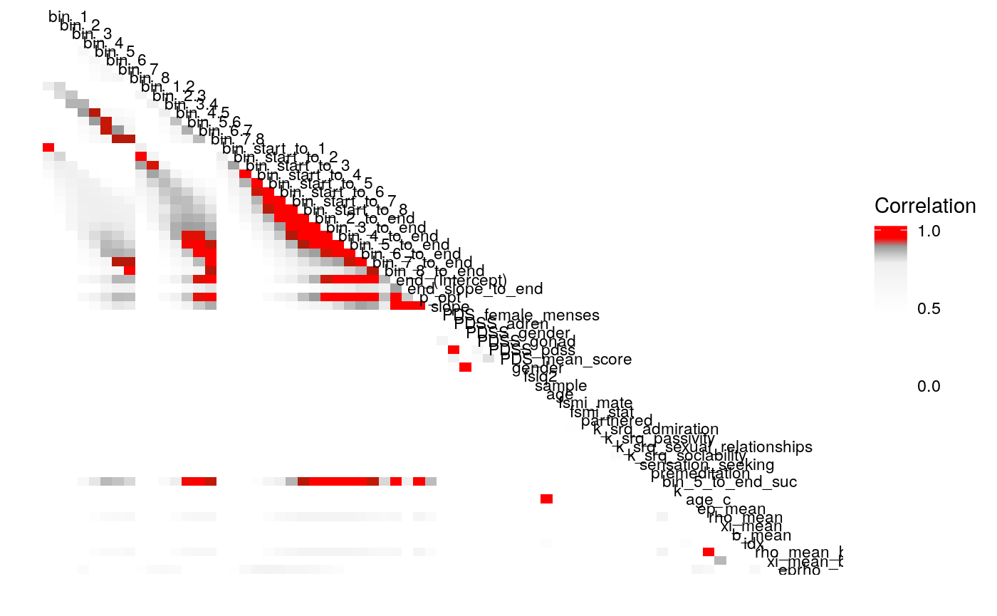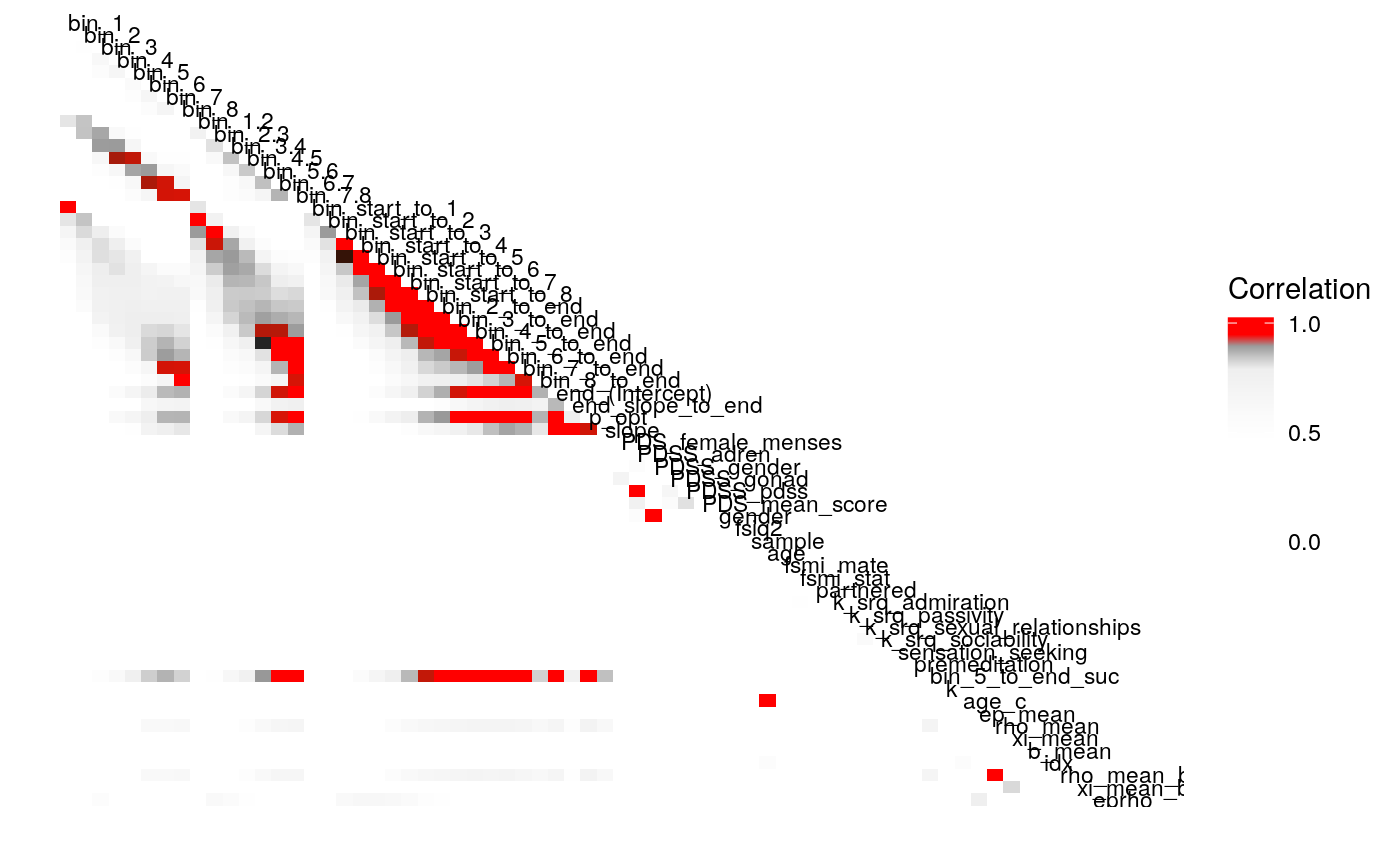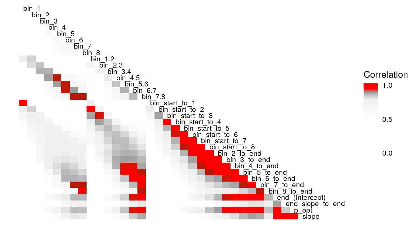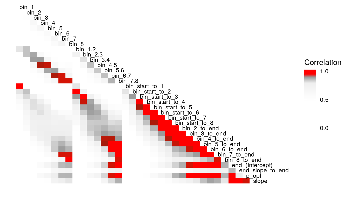 #> bin_5_to_end 1.000 -0.018 0.005 0.007 0.042 0.046 -0.103 -0.072 -0.019 0.021 -0.016