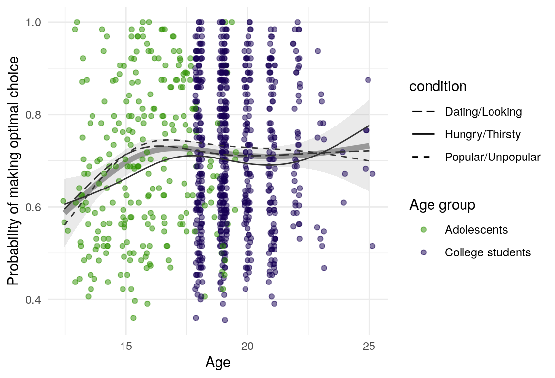 | Optimal choices contrasts \(\sim\) Age | All | 0.00 | 0.05 | 0.07 |