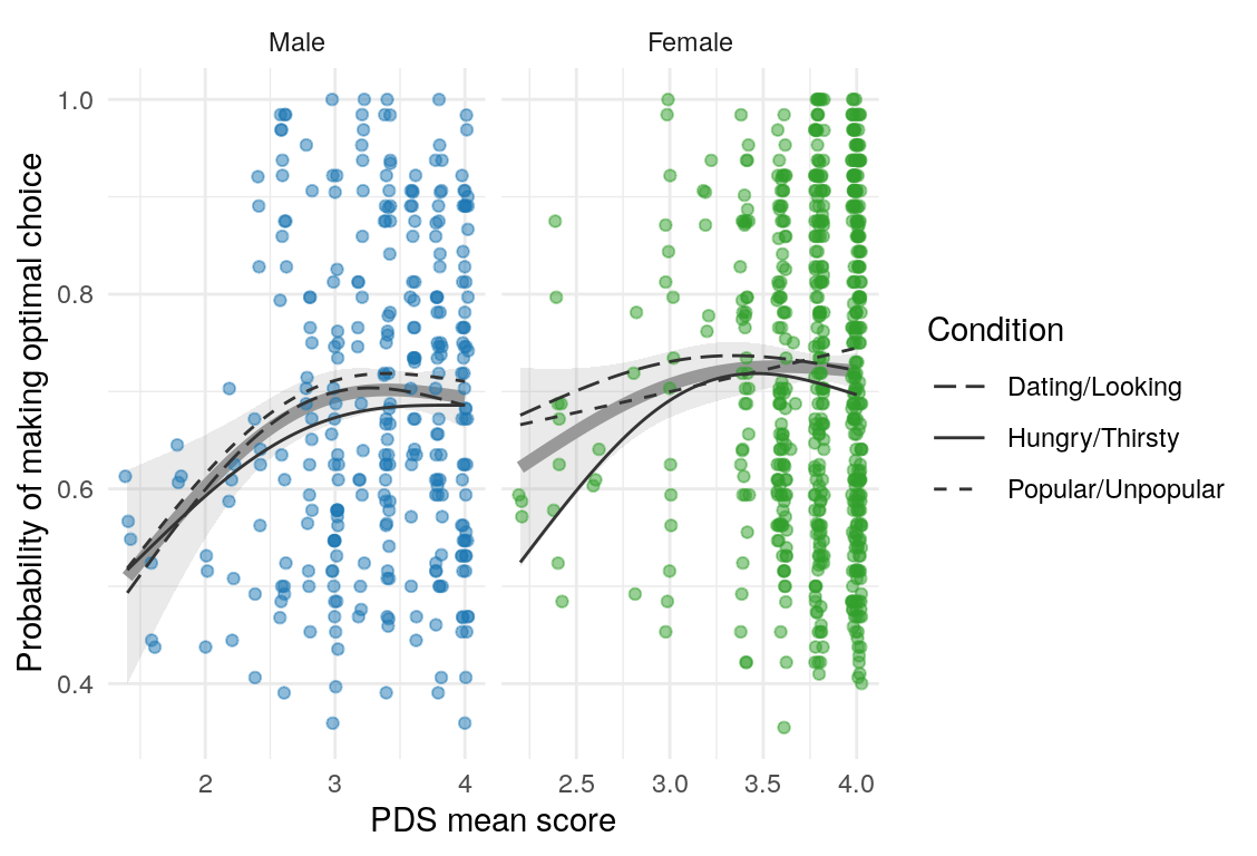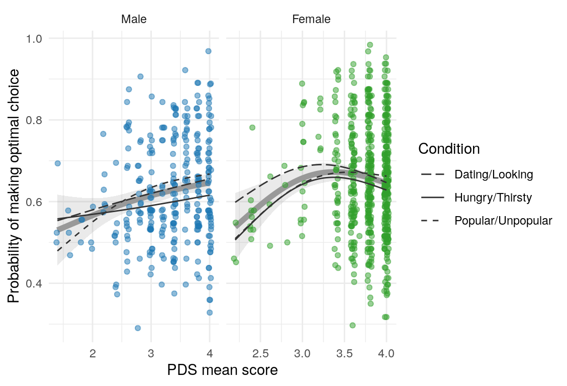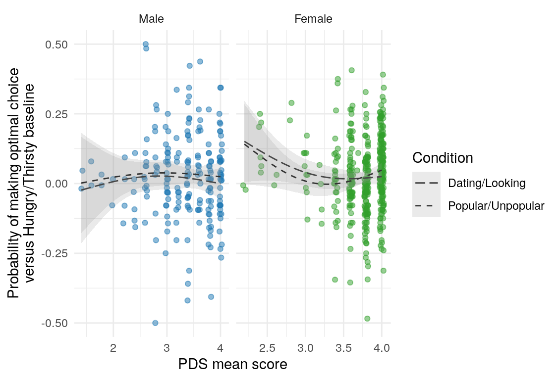 | Optimal choices contrasts \(\sim\) PDS | Adolescent | 0.03 | 0.10 | 0.29 |