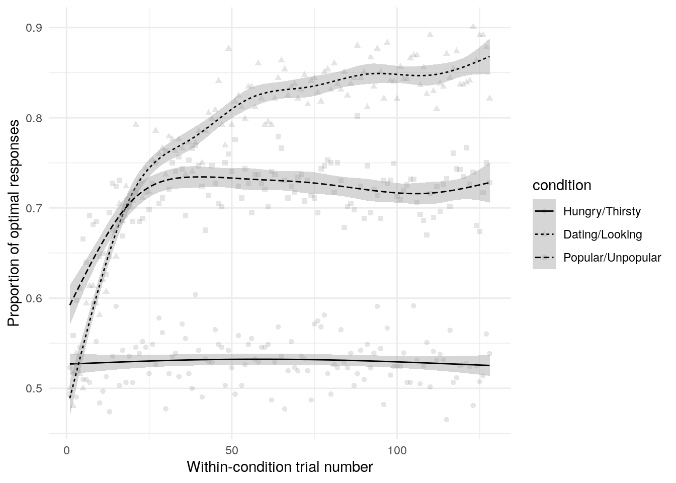 test-simulated-data.RmdAim 1a: Does framing reinforcement learning with (mate-seeking and status) motivational contexts sensitize the learner and potentiate learning?
