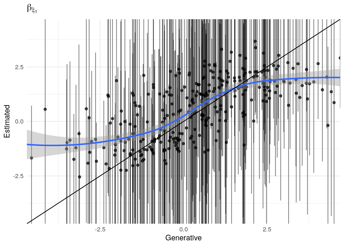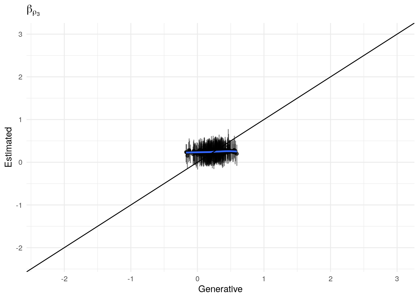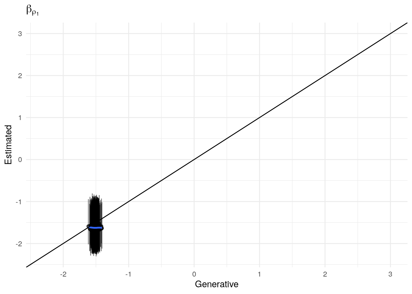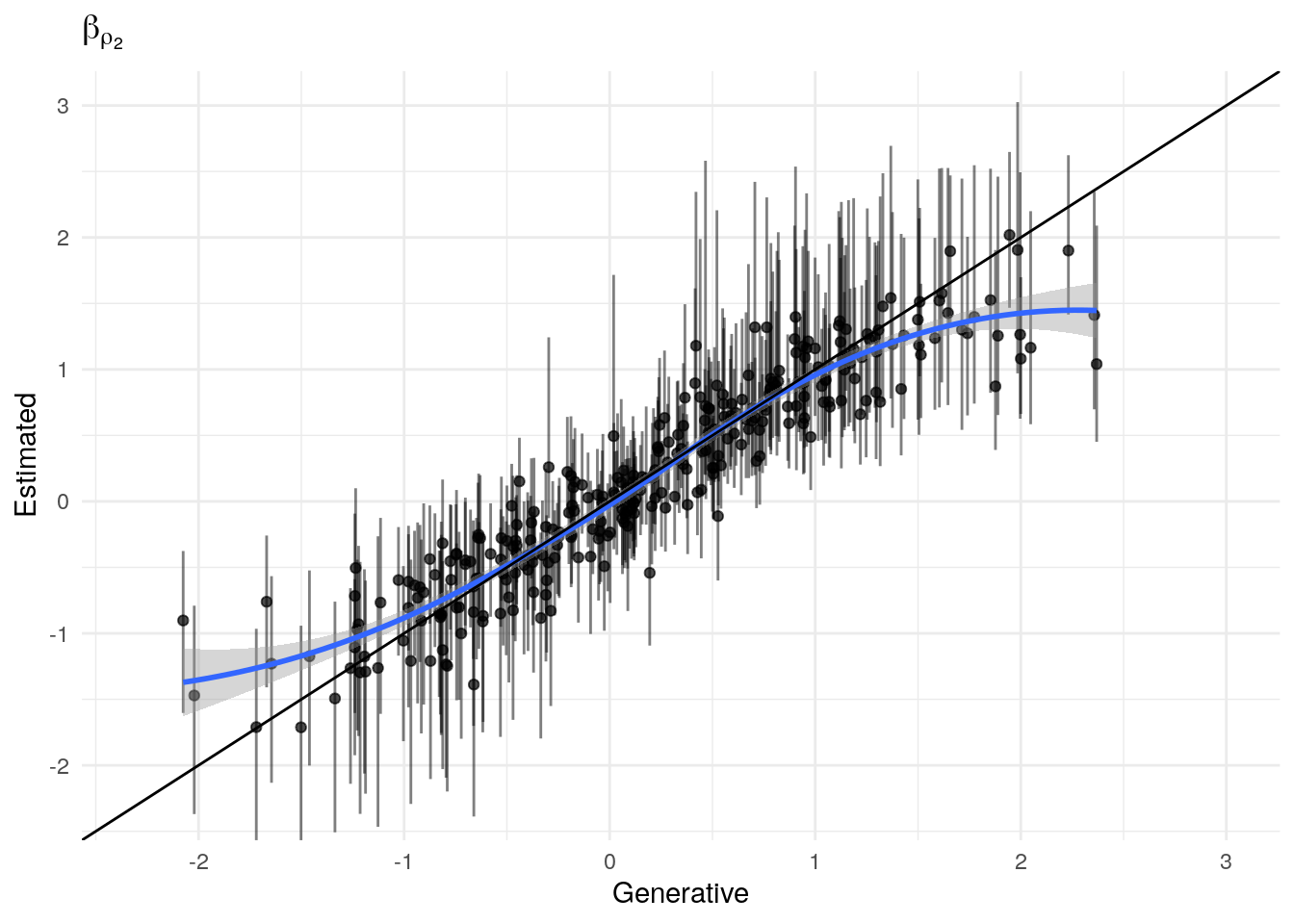 Note that these are the raw parameter values which are transformed such that \(\epsilon^\prime \in [0,1]\) and \(\rho^\prime \in [0,\infty)\). Similar to logistic regression, estimating the parameters on a scale the is not resticted improves estimation.↩