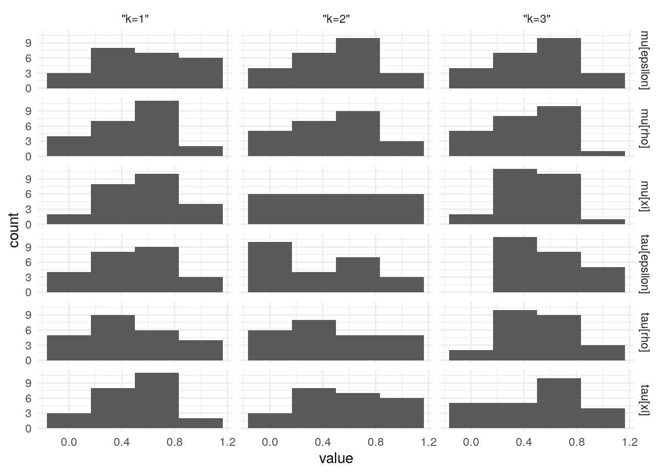| beta[rho] | “k=2” | 0.048 | 0.952 | 7392 | 0.002 | 0.043 | 0.053 | 0.004 | 1.000 |